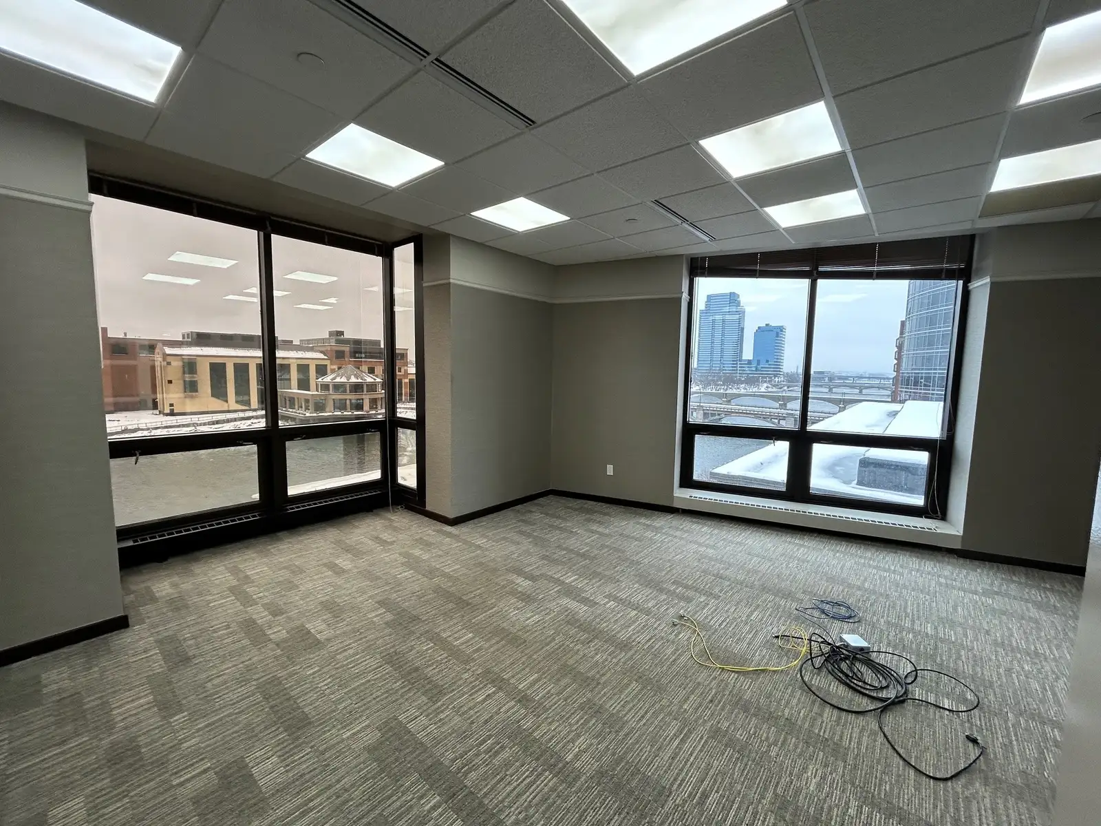 Lots of windows overlooking the City and the Grand River
